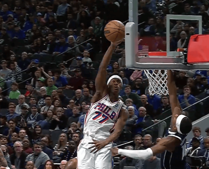 76人官方晒照:埃奇库姆对同一个球封盖两次,太疯狂了。
